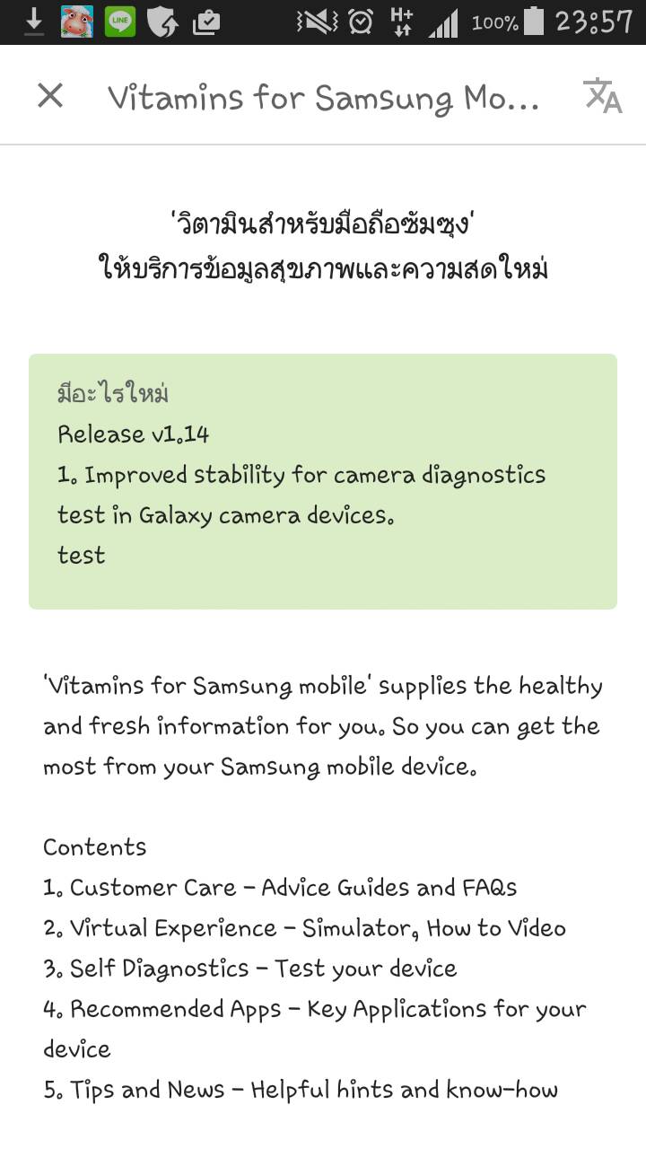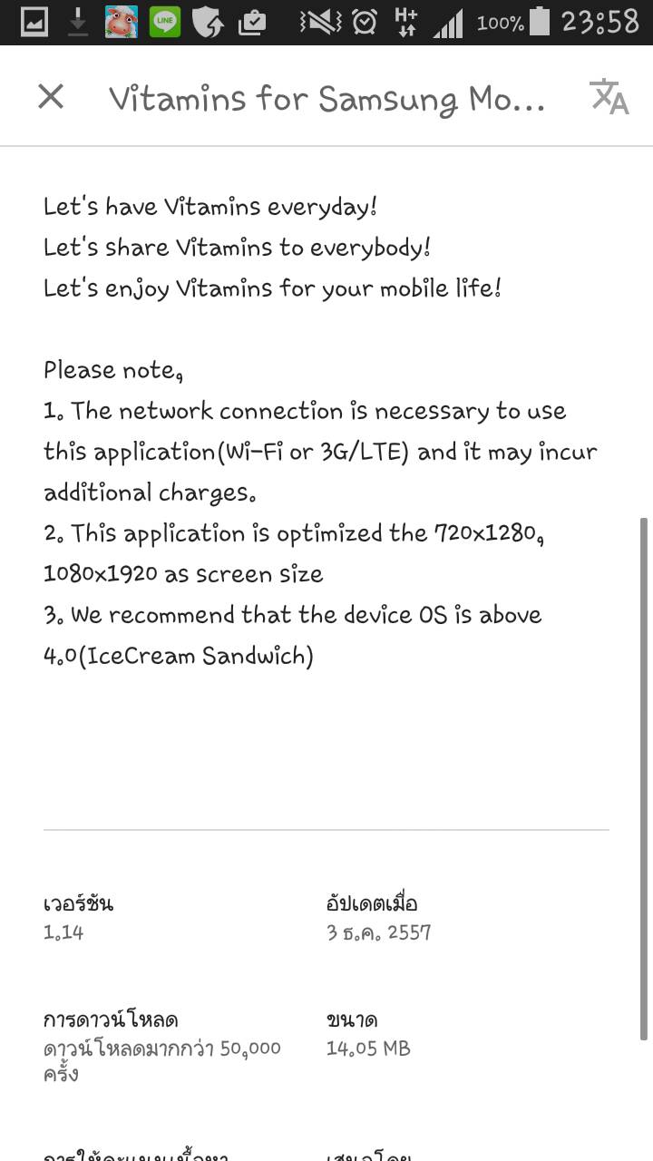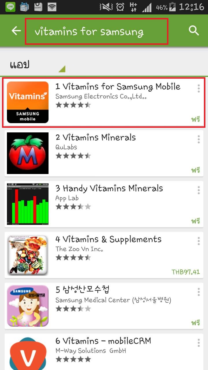 แอพพลิเคชั่น Vitamins for Samsung Moblieเป็นแอพพลิเคชั่นที่สามารถดาวน์โหลดได้จากใน Play store (เป็นแอพพลิเคชั่นของซัมซุงนะจ๊ะ )