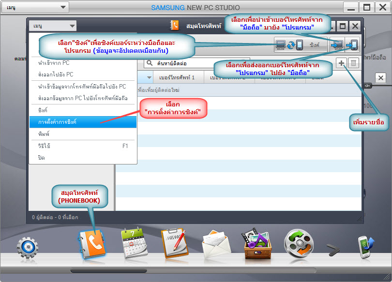 3.3 Samsung New PC Studio (new vesion!!) : ซิงค์เบอร์โทรศัพท์กับโปรแกรม (PHONEBOOK)