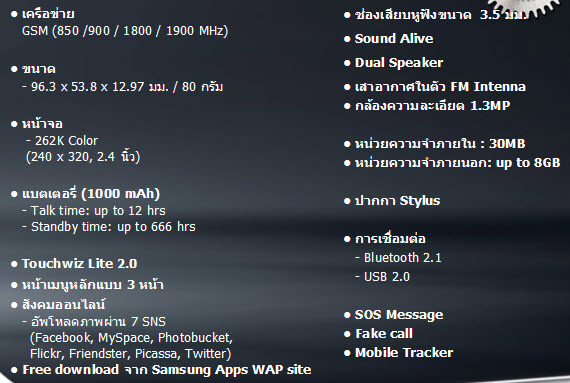 คุณสมบัติ ข้อมูลผลิตภัณท์