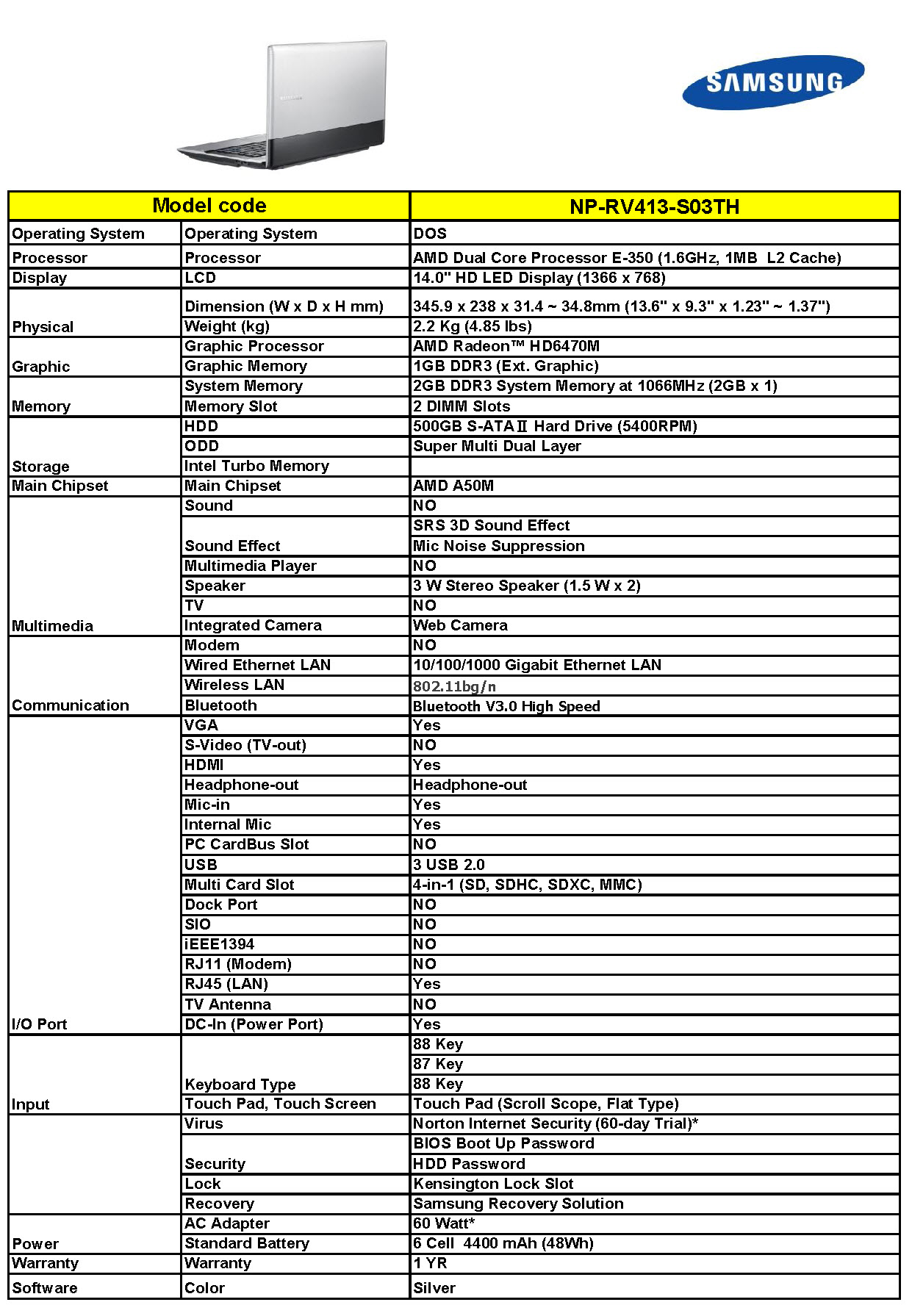 คุณสมบัติ ข้อมูลผลิตภัณท์